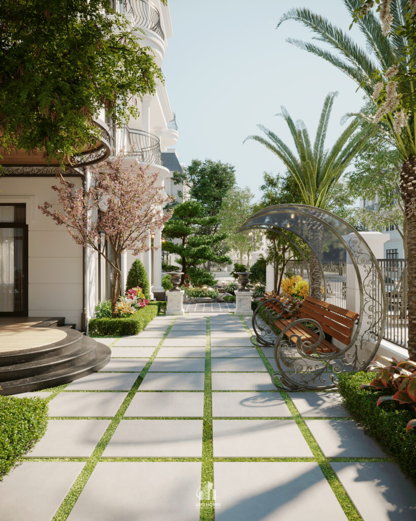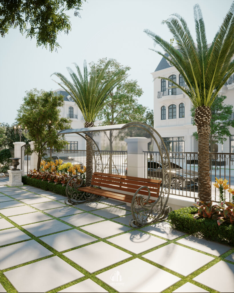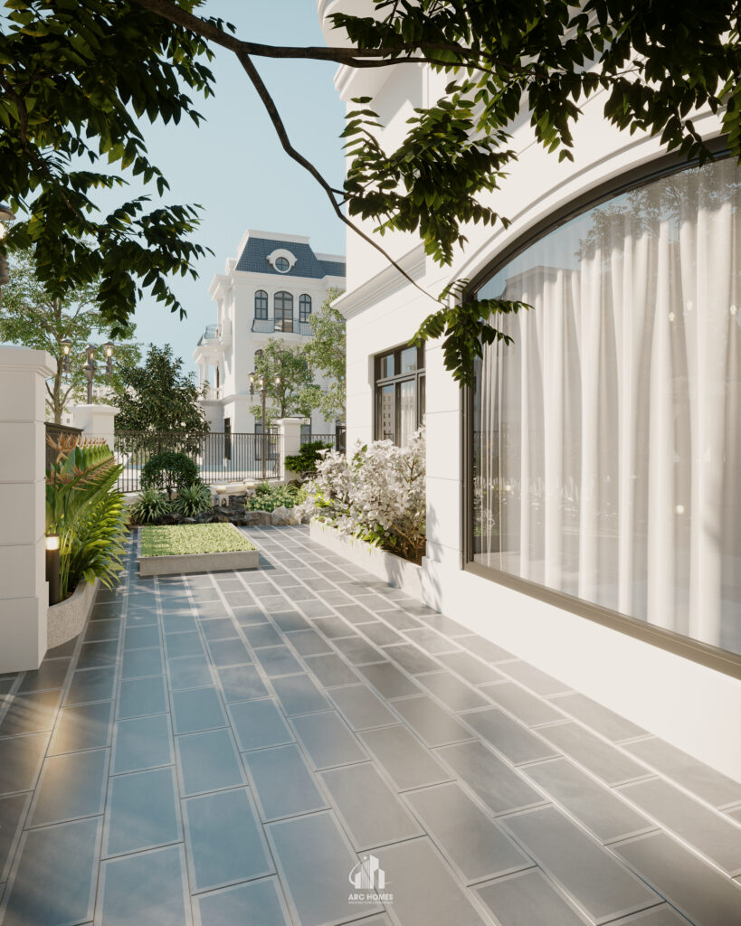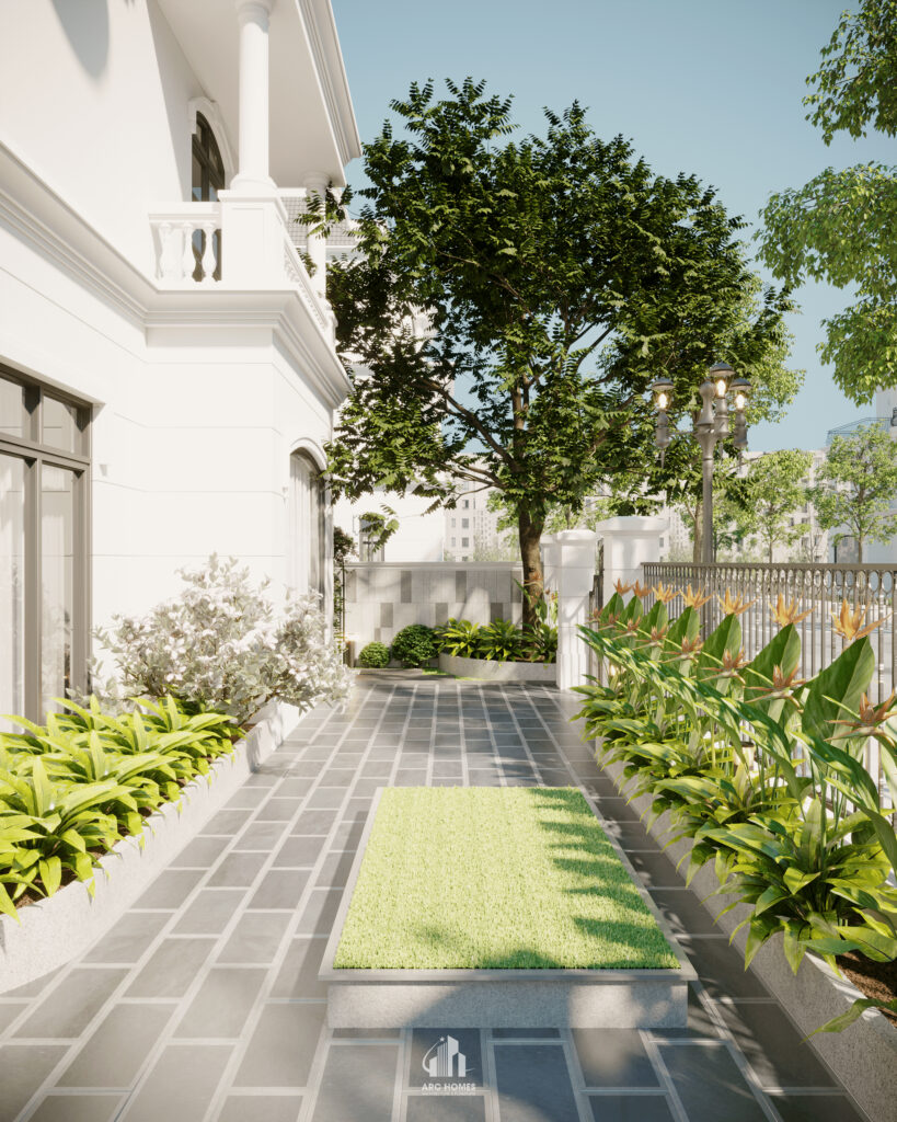 Mẫu thiết kế sân vườn cho biệt thự Vinhomes được thực hiện bởi Arc Homes. Cải tạo lại sân vườn đơn điệu xung quanh ngôi biệt thự cũng là một trong những việc nâng cao thẩm mĩ cho kiến trúc tổng thể. Cho một không gian sống chất lượng với khuôn viên thiên nhiên thư giãn và trong lành.